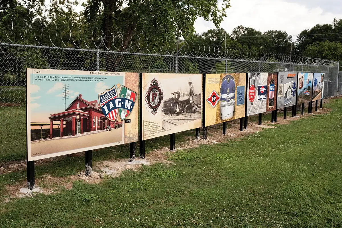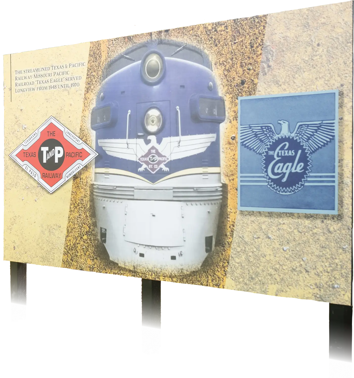 Arts!Longview worked with Holly Forbes and the late Jason Butler of Forbes & Butler Visual Communication on the design of the mural; meanwhile, Griff Hubbard provided both historical context and accuracy to the mural. The Hubbard family has been instrumental figures in East Texas’ railroad history, and Griff Hubbard is the fifth generation in his family to serve the industry.